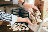 We start the process off by mixing organic sawdust & bran with Oyster mushroom spawn, and incubating it under ideal conditions. We then ship a kit out to you for the fun part!